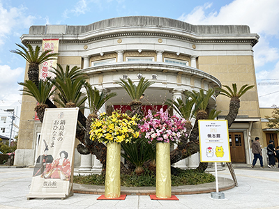 100年を迎えるレトロな徴古館とソテツの木、花装飾をバックにして写真撮影もおすすめです。