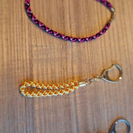 組み紐はもともと、鎧などの武具の紐として鎌倉時代に発展し、その後茶道具や着物の帯締めとして使われるようになった日本の伝統技術です。