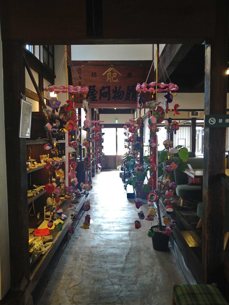 旧長崎街道に面して、主屋(東棟)と土蔵(西棟)が並び建っています。主屋間口は約9m、建物の西側部分は土蔵造りです。大正期の貴重な大型町屋として重厚で存在感あふれる造りをしています。1階の主屋と土蔵の間の通路は、今も南側の川沿いへ抜けることができ、柳町の風情を醸し出しています。