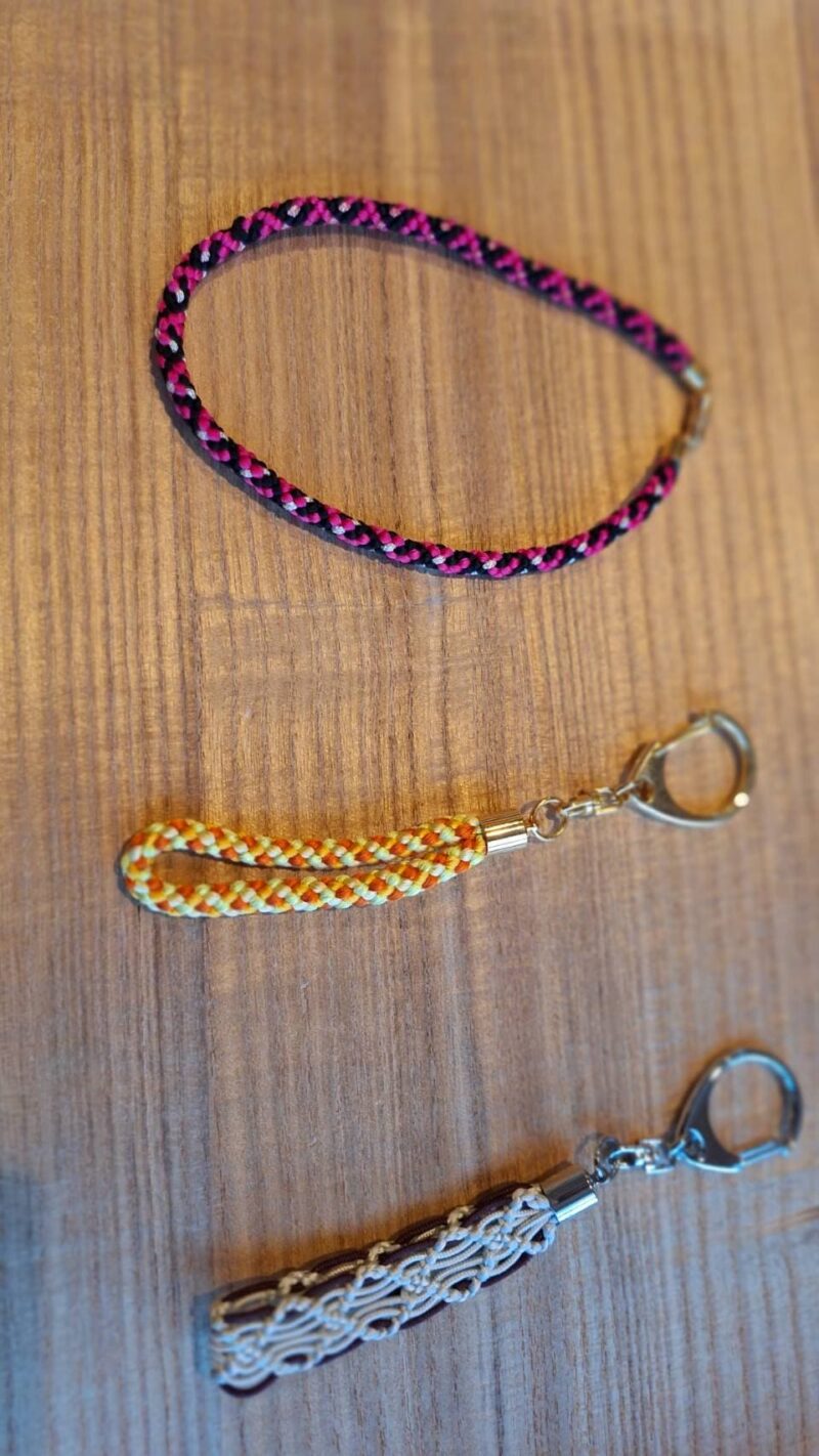 組み紐はもともと、鎧などの武具の紐として鎌倉時代に発展し、その後茶道具や着物の帯締めとして使われるようになった日本の伝統技術です。