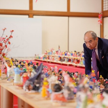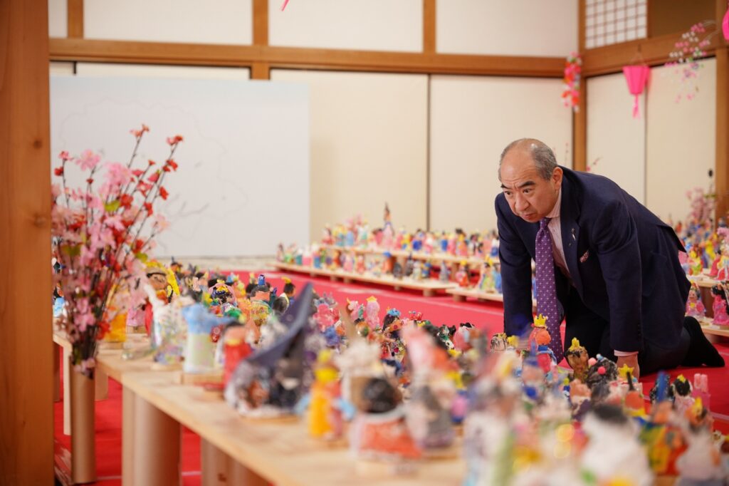 この宴の最大の特徴は、人間国宝・十四代今泉今右衛門氏がひな人形の審査を通じて、子どもたちの感性と向き合い続けられていることです。最高峰の伝統を担う眼差しが未来を創る子どもたちの表現を温かく見守る。ものづくりにひたむきな、世代を超えた「心」のつながりが、佐賀の春を彩ります。