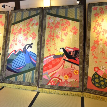 伝統的な花柄やひなまつり文様のものを中心に、340年の歴史を誇る和製絨毯「鍋島緞通」の展示と製作実演を行います。また、販売コーナーもあります。